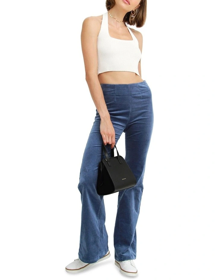 Explore this retro look with the Studio Corduroy Flared Pants crafted from premium stretch denim to perfectly hug your figure. Flaunt that small waist with its high-rise and clean line front.