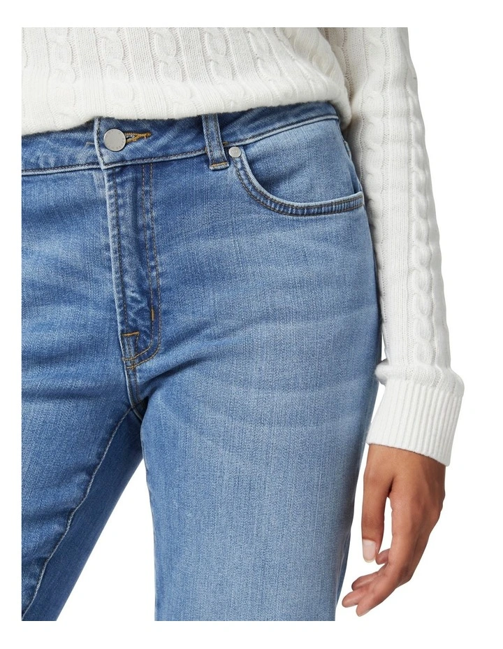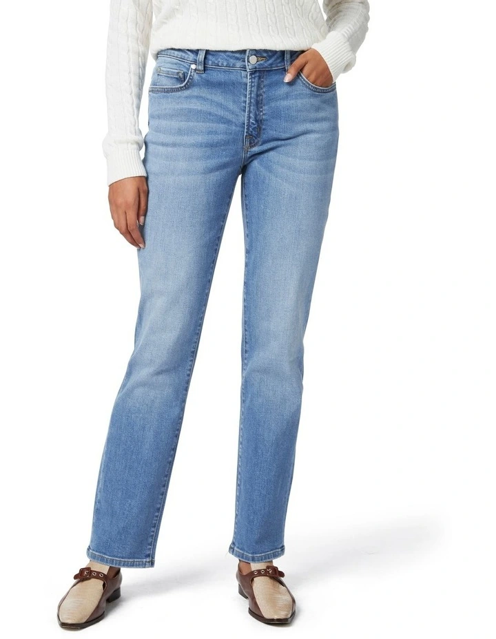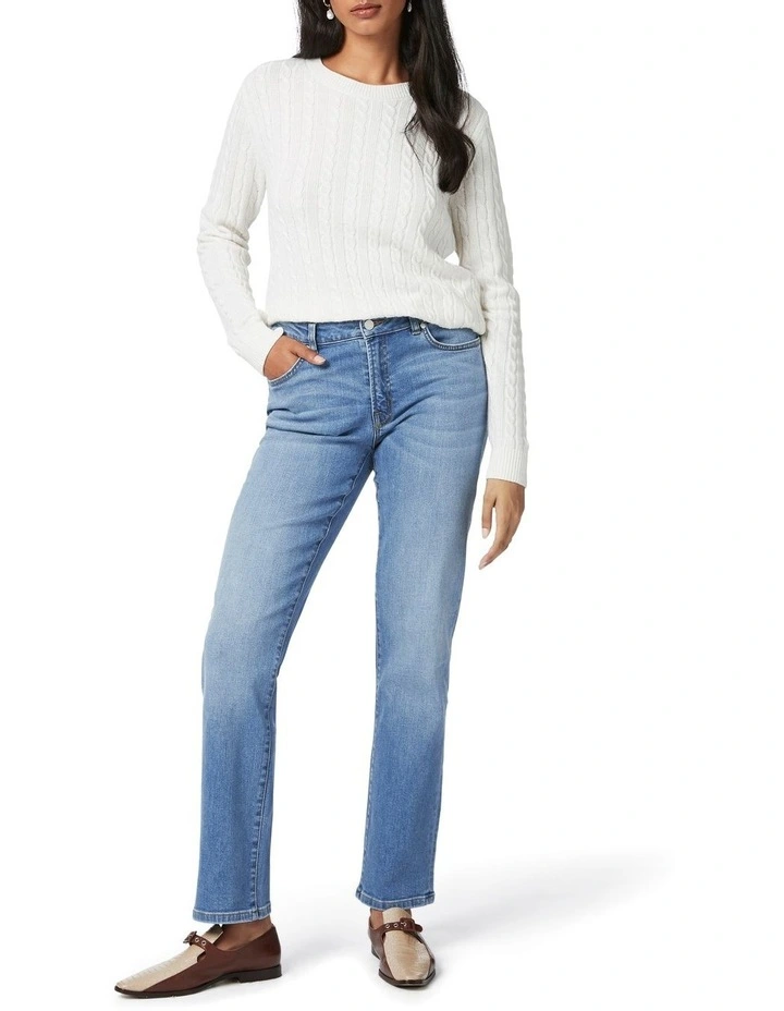 Effortlessly wearable, these jeans descend through a regular mid-rise fit, creating a straight leg profile to full length. Made from soft denim in a light wash, the jeans fasten at the front with a fly and button closure, accentuated with classic five pocket jean styling, contrast topstitch detailing, and David Lawrence branded metal hardware.
