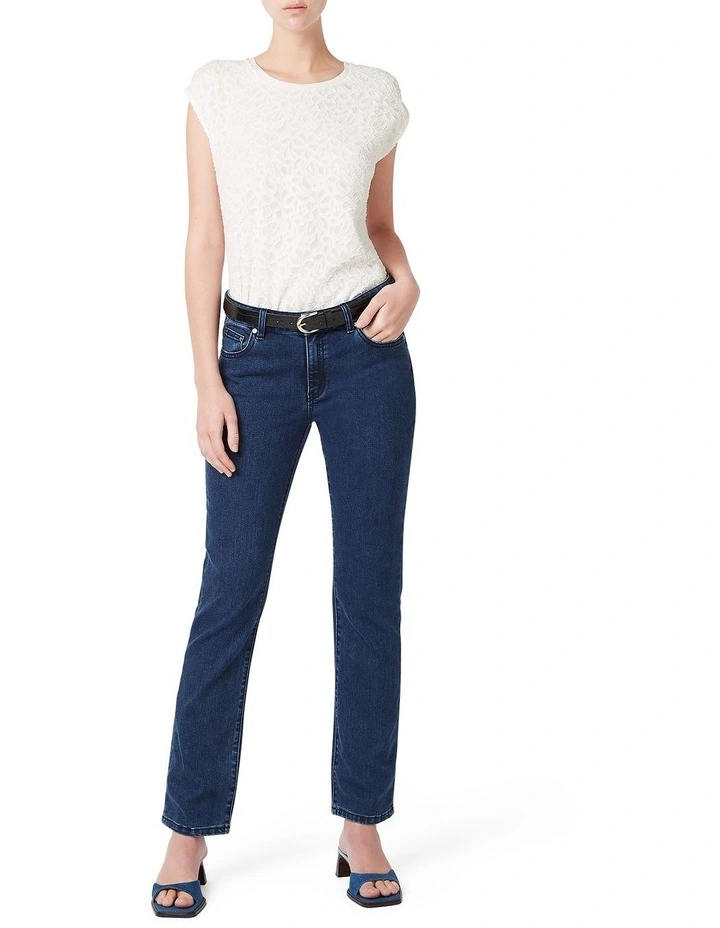 Designed for comfortable, figure-flattering wear, the Amanda Straight Leg Jean is a classic five pocket design. Featuring a silhouette-lengthening straight leg design, they are exquisitely finished with gunmetal hardware and tonal stitching.