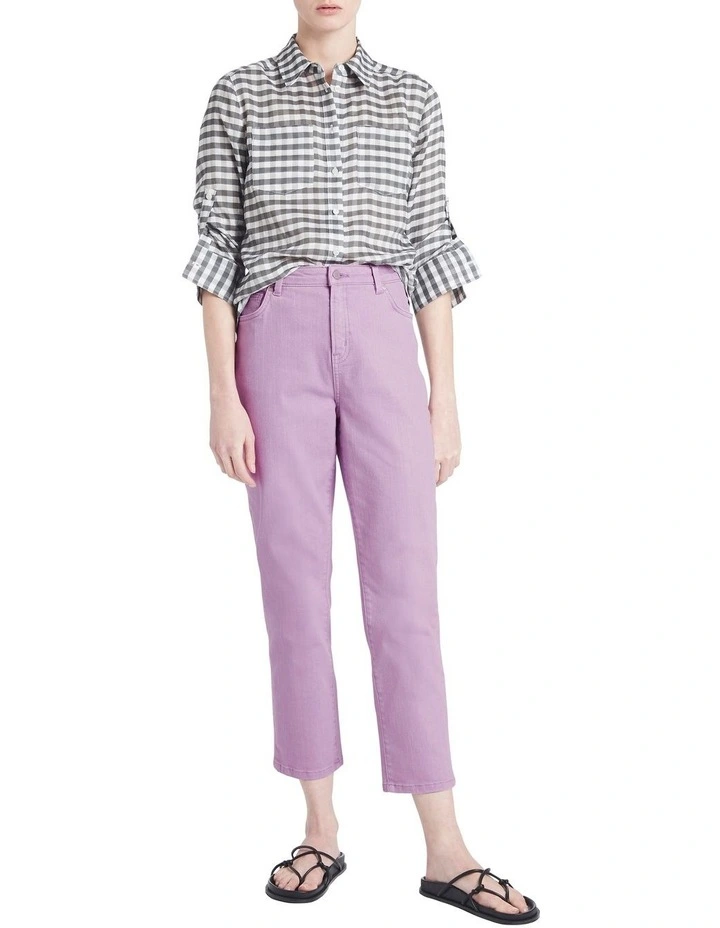 Creating a pop of colour in your wardrobe, these lilac jeans are a must-have this season. Pairing easily whether dressed up or dressed down, the jeans feature a classic button and fly front closure, descending from aΒ high-rise through a straight leg to a cropped length. Further detail can be found in the David Lawrence branded hardware and five pocket jean styling.