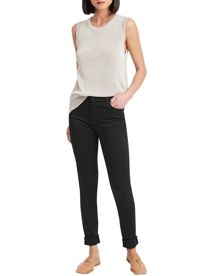 Exquisitely crafted for supreme comfort in an ultra-flattering skinny leg design, the Jackie Skinny Leg Jean flatters feminine curves beautifully. Featuring elegant black denim fabrication, tonal stitching and stylish gunmetal hardware, they are an essential addition to any wardrobe.