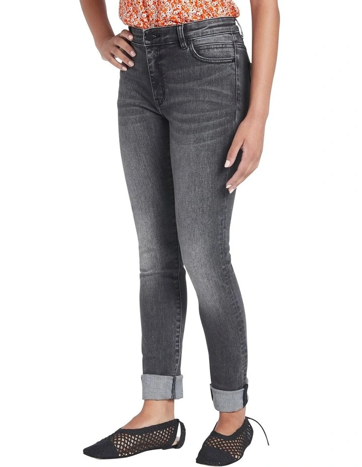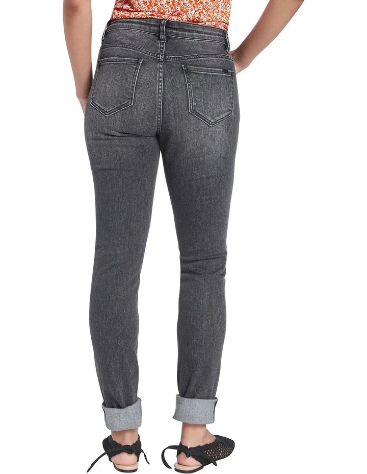Elongating the leg with a flattering skinny fit, these jeans will become your go-to neutral, offered in an easy-wearing mid-grey wash. Curving close through a mid-rise waist to descend to full length, the jeans are made from cotton-blend Eco Wash denim with a hint of stretch for comfort, and are completed by a classic button and fly front fastening and five pocket jean styling.