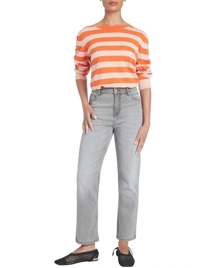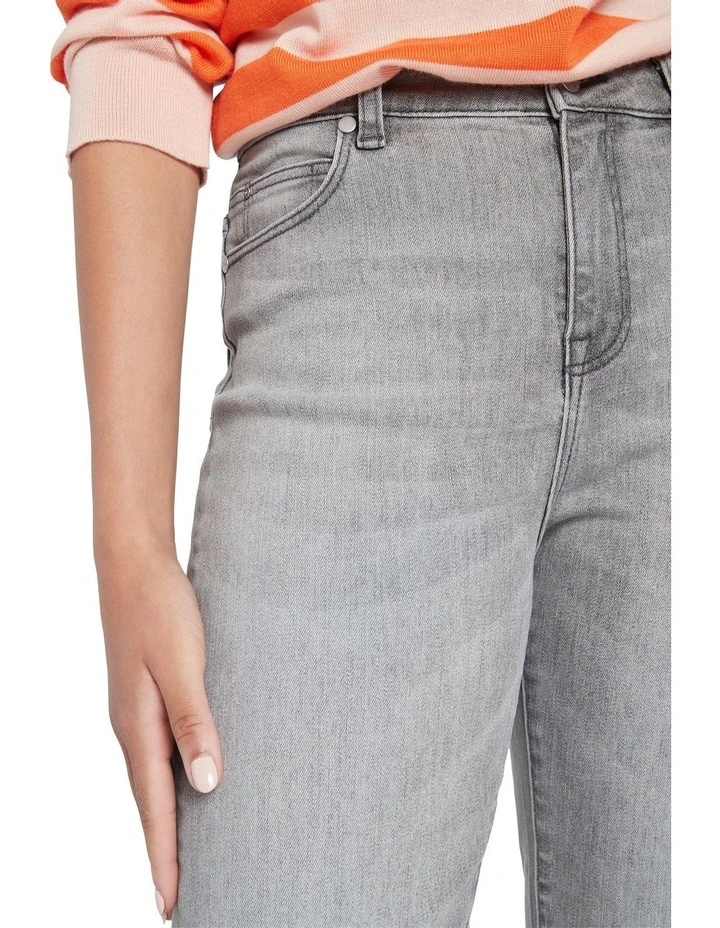 Offering effortless pairing in neutral pale grey, these jeans are made from Eco Wash denim in a soft cotton blend, featuring stretch for a comfortable fit. Curving through a neat fit high rise waist, the jeans descend through a straight leg fit to a slightly cropped length, while keeping it simple elsewhere with a classic button and fly front closure and five pocket jean styling.