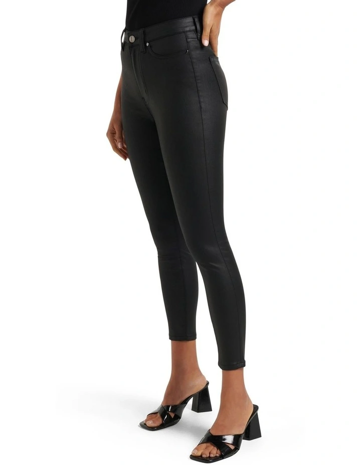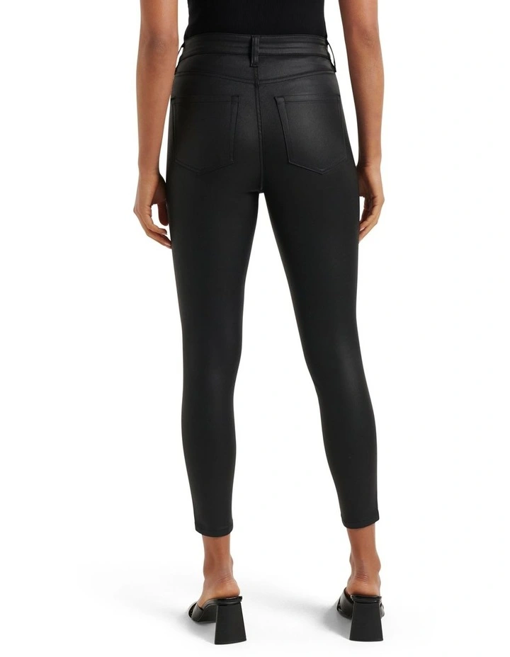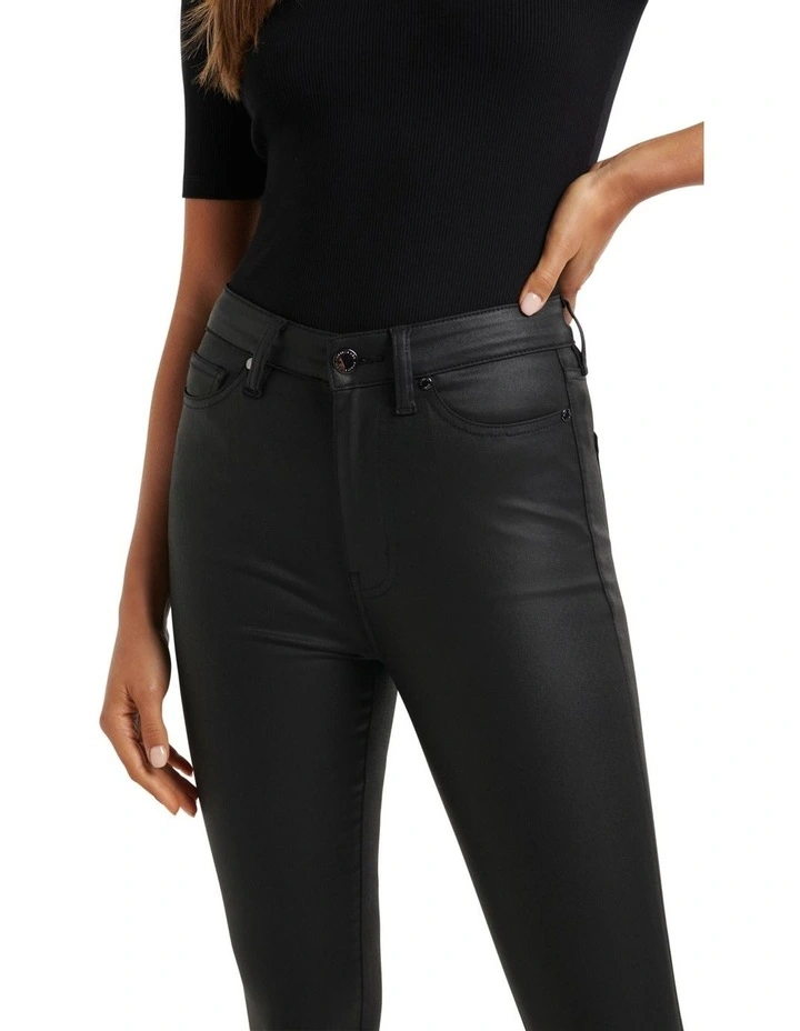 - Sleek high-rise coated jeans that offer a subtle wet-look appearance for everyday wear