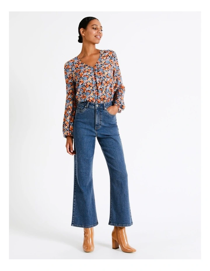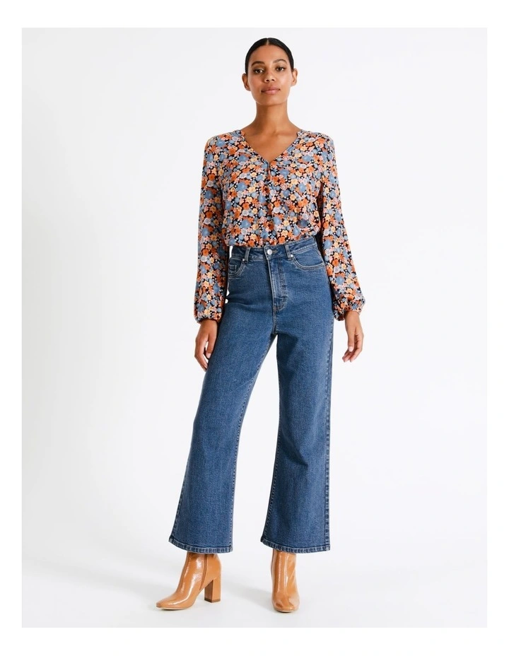 The silhouette of the season, every wardrobe needs a pair of wide leg jeans. These jeans have a high rise cut and are made of a comfortable, stretch fabric for easy wear. On-trend and easy to style, these jeans are a must-have.