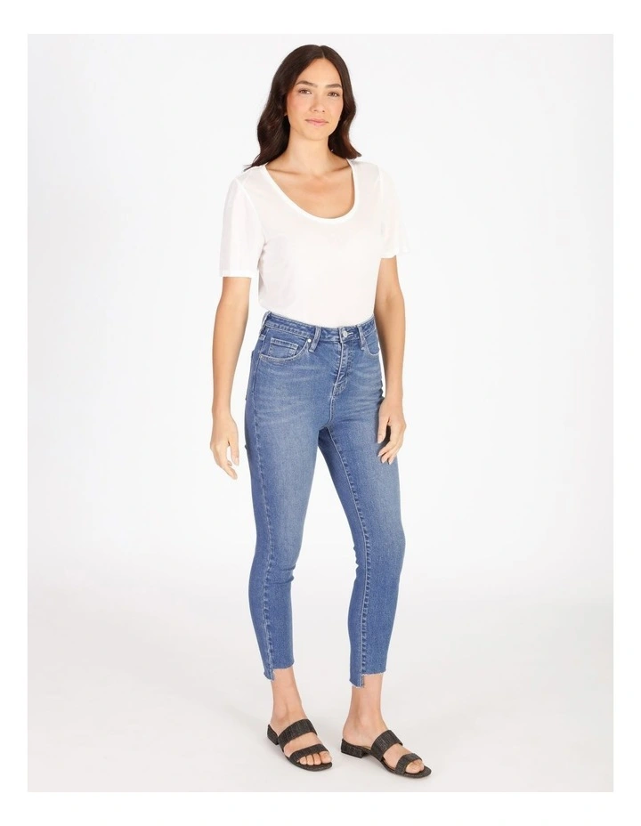 Grab Olivia Crop Skinny Jean With Step Hem – Mid Blue