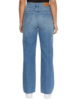 A wardrobe staple and a reliable piece to complete an endless amount of looks. Always on trend, these jeans are fitted high at the waist and feature a slightly distressed look. Featuring functional pockets and a wide leg, these jeans are classic but effortlessly cool.Β