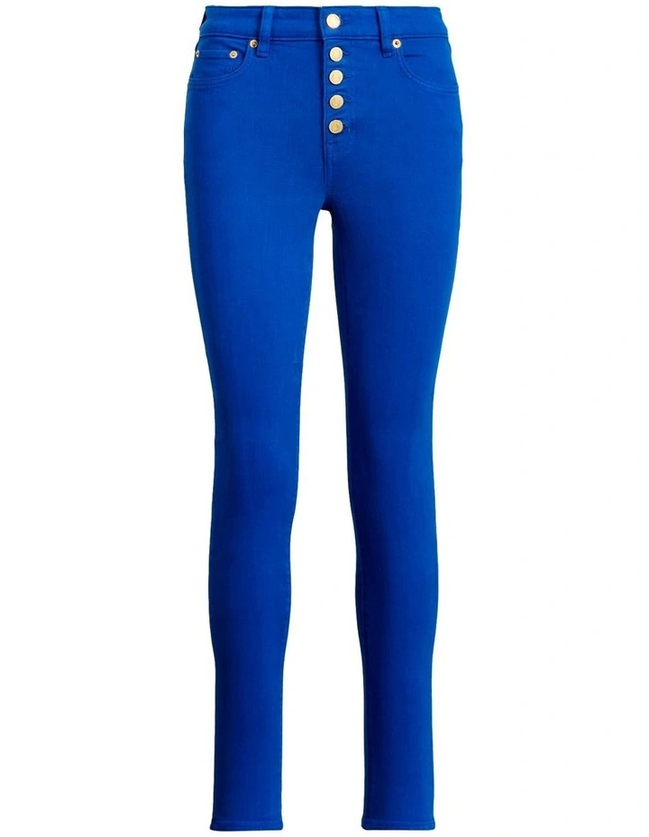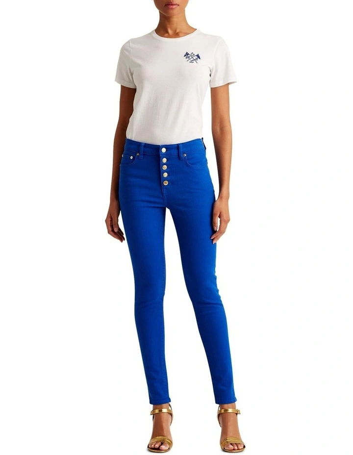 These skinny ankle jeans are crafted from comfortable stretch cotton and designed with a five-button fly and a high rise for a flattering fit.