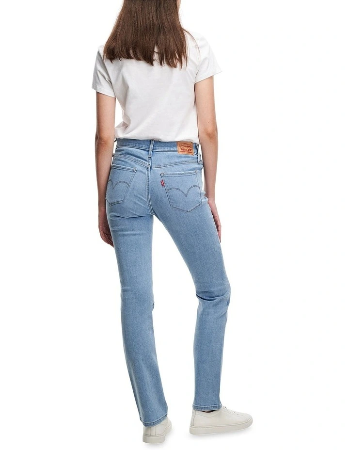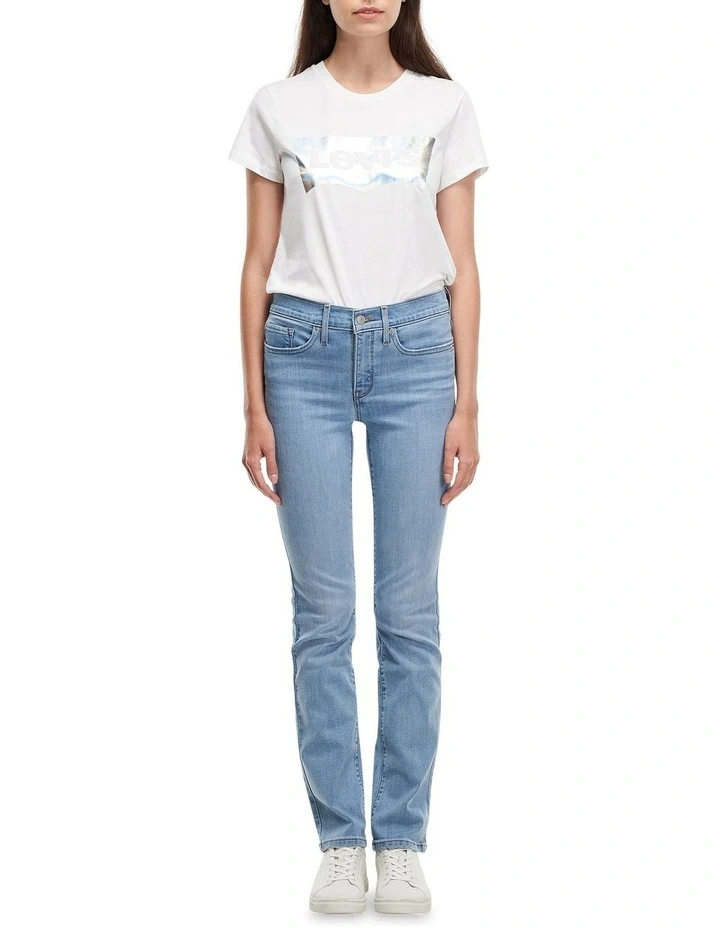 Size and Fit: Mid Rise Stretch Shapes through your hip and thigh Straight leg Mid rise 9.25 inches Zip fly and 5-pocket styling