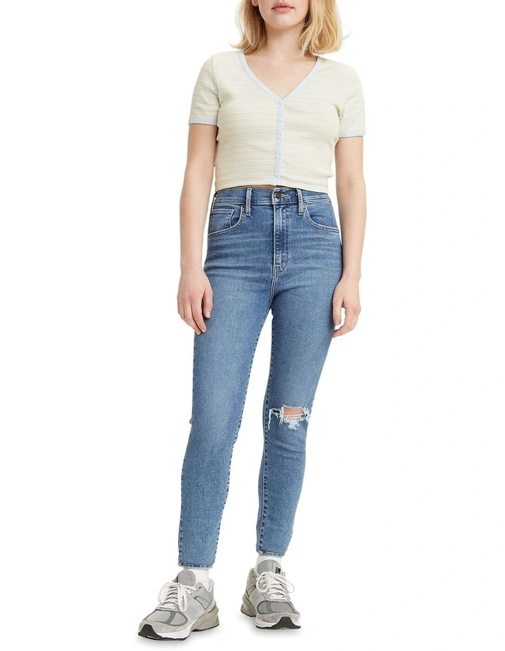 Size and Fit: Skinny through your thigh and leg Super skinny leg Extra high rise: 10.875 inches Zip fly and 5-pocket styling