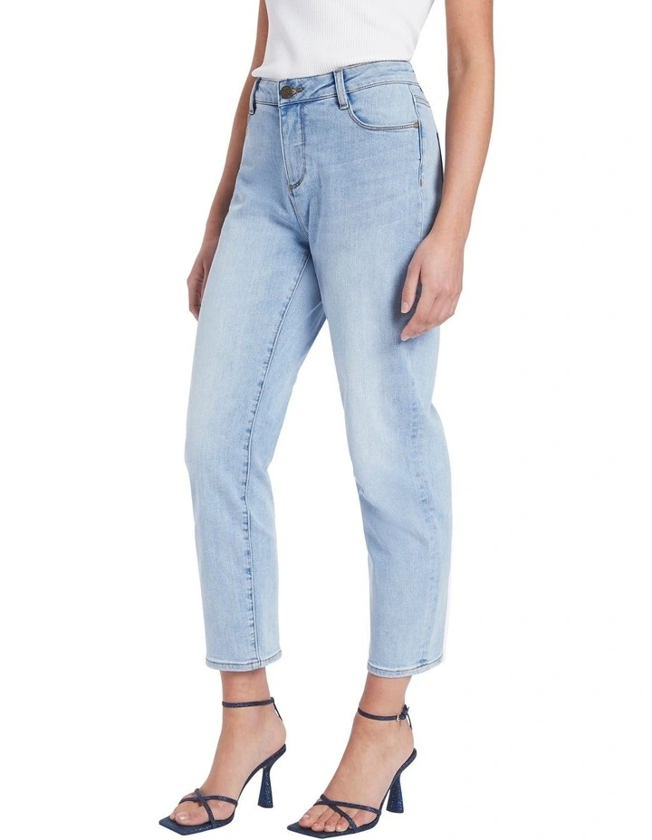 Offered in an effortless light wash, these jeans reveal essential styling as they descend from a neat mid rise through a relaxed fit to a cropped ankle length. Made from Eco Wash power stretch cotton-blend denim, the jeans are completed by contrast topstitch detailing, belt loops at the waist, and a classic front closure and pocketing front and back.