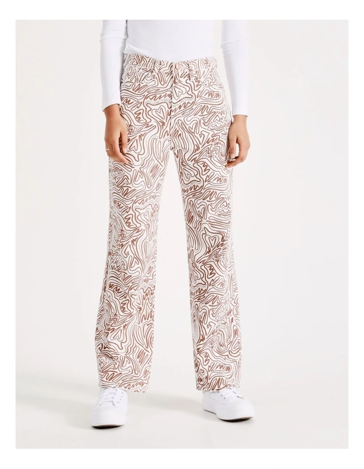 Style an on-trend look with our printed wide-leg jeans. With a flattering wide-leg cut, these jeans boast a unique, squiggle print that will elevate your everyday looks. Wear with your favourite long sleeve tee for the perfect finish.
