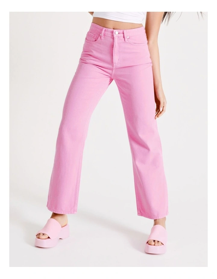 Miss ShopΒ Recycled Blend Coloured Wide Leg Jean in Pink Sherbert