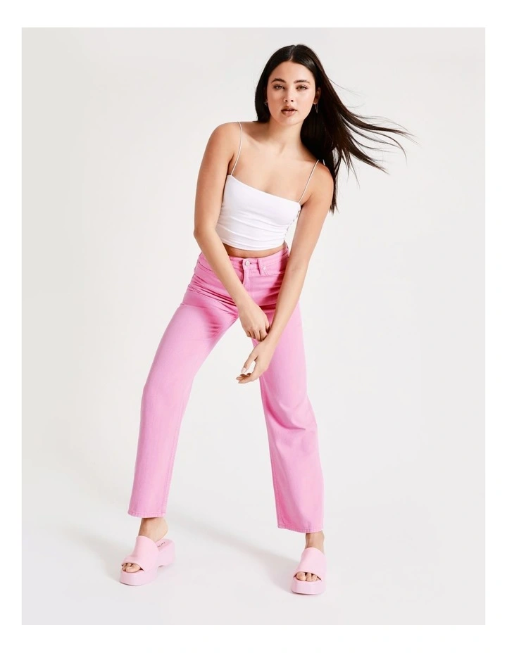 Make a statement in a pair of colourful wide-leg jeans. These jeans have a high waisted, wide-leg cut and are coloured in a vibrant pink shade that will turn heads. Wear it with your favourite white top for an impactful finish.