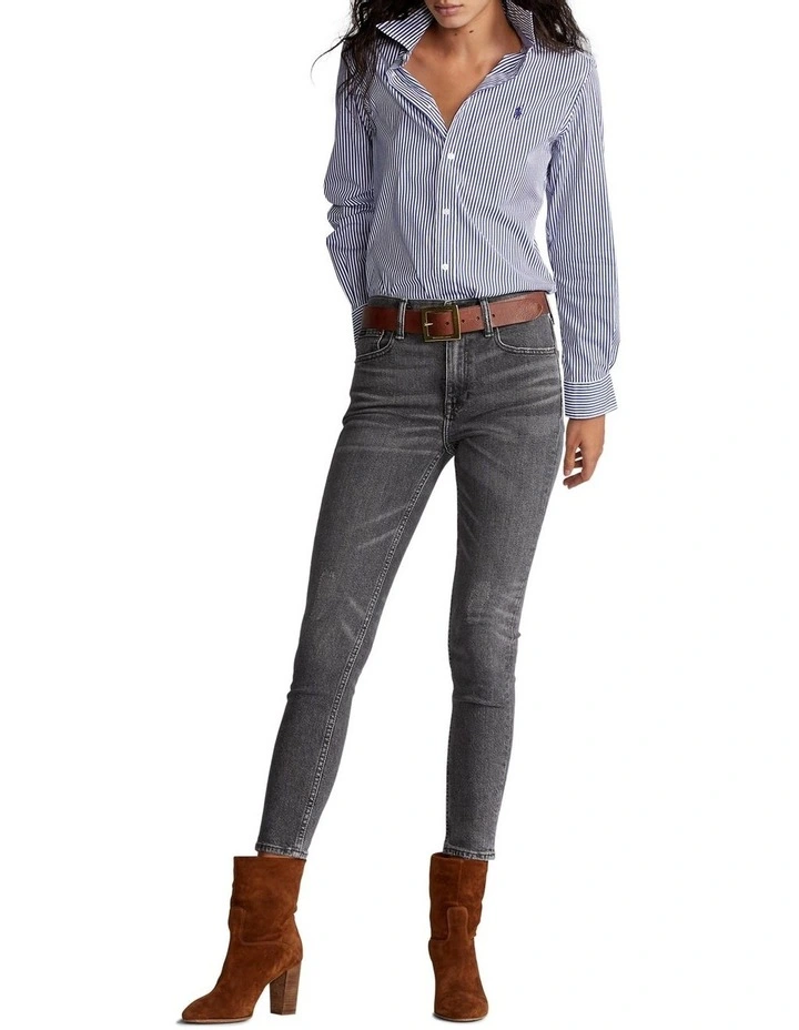 Expertly woven in Turkey from right-hand twill, this version of our signature high-rise skinny jeans is crafted with minimal stretch and features a well-worn grey wash for authentic denim character.