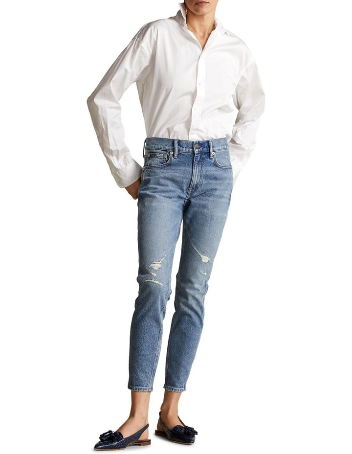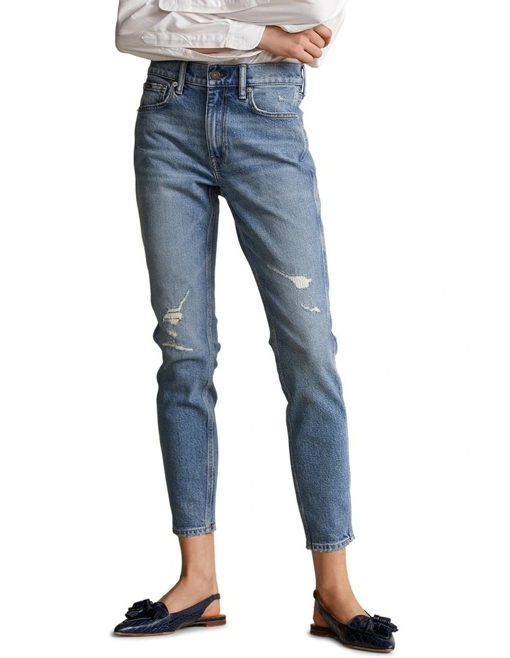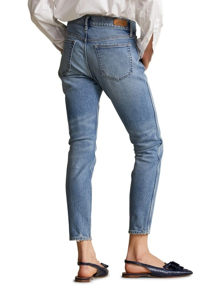Woven from cotton with minimal stretch, this version of our signature mid-rise skinny crop jeans are presented with an authentic indigo wash and features light distressing for perfectly lived-in style. The Tompkins Skinny Crop: our signature skinny fit with a mid rise. Cropped to hit just above the ankle.Β