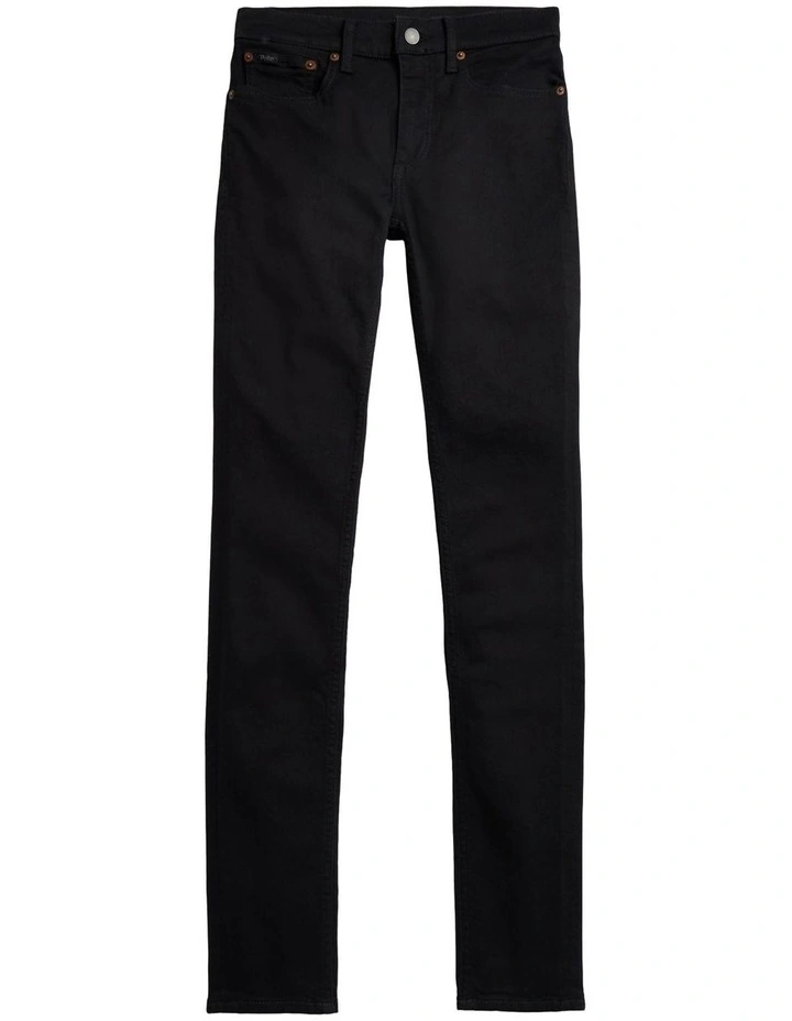 - Five-pocket styling with signature “P.R.L. 67”-engraved metal rivets. “Polo” patch at the coin pocket.