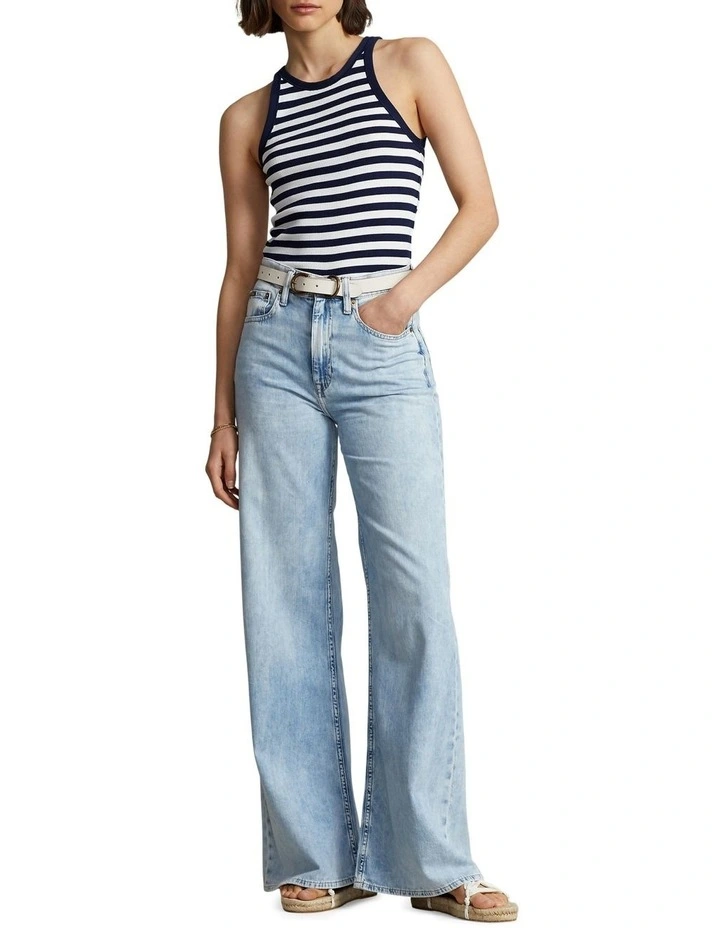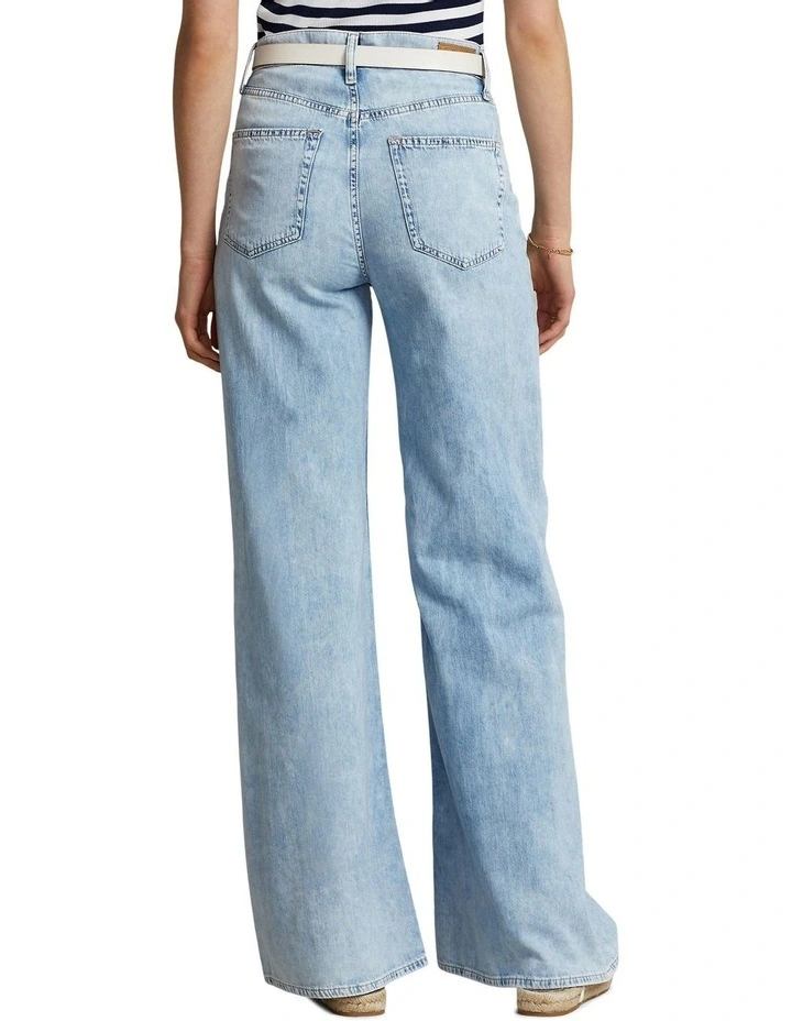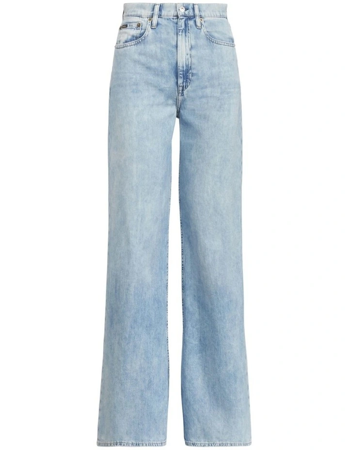 Expertly woven from right-hand twill, this wide-leg jean is crafted to achieve authentic denim character with a light weight. Its light indigo wash features whiskering and highs and lows in color variation to achieve a perfectly lived-in look.