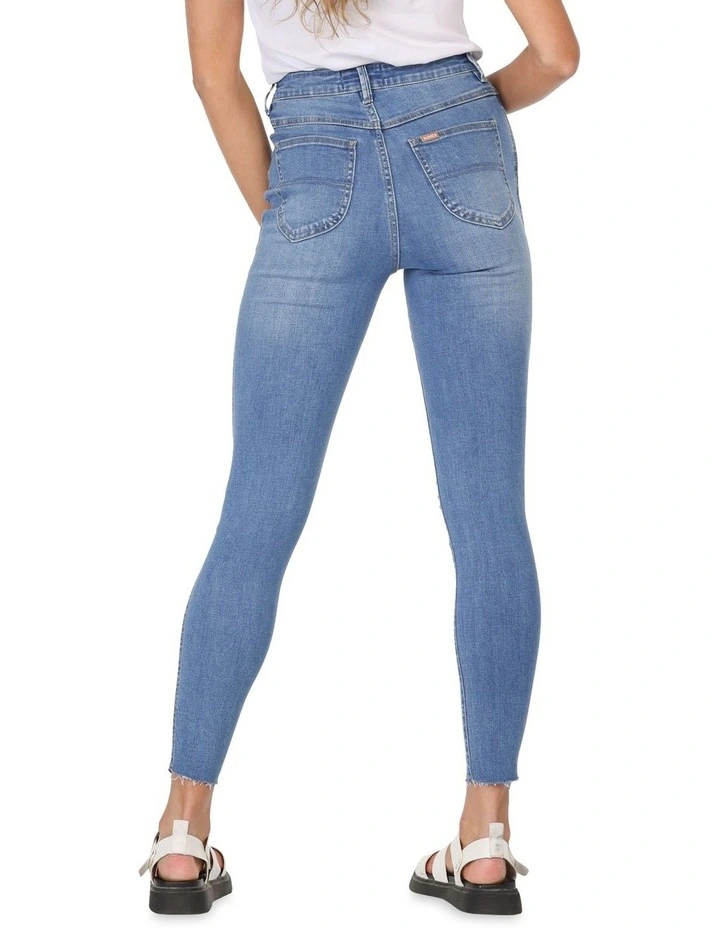 The Hi Rider is our best-selling iconic high-rise skinny jean. Featuring an ultra-high waist, a cropped leg length and flattering back pockets. This is our new favourite stretch denim fabric in a vivid and bright blue base with the perfect amount of texture and stretch. It’s the perfect high stretch fabric for our favourite skinny jeans