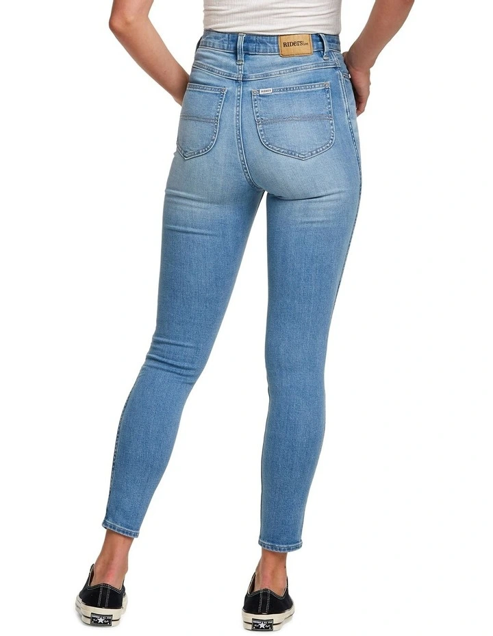 The Hi Rider is our iconic super high-rise jean, slim through the leg with a cropped leg length. Finished with a mid blue washed denim to give an authentic look, wash and soft finish. This jean is an every wardrobe must have.