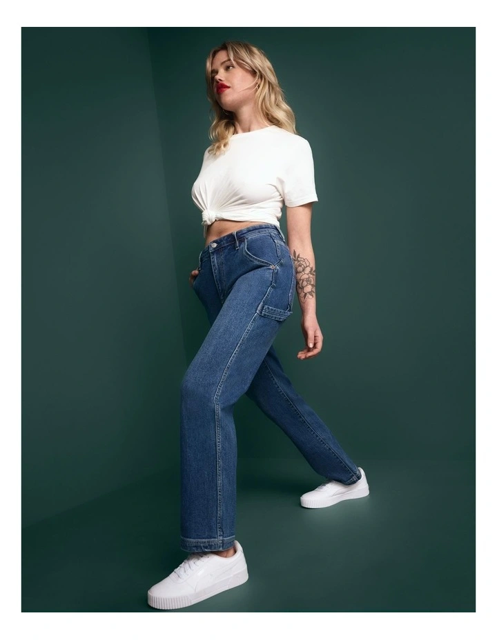 Hi Straight Long is our classic straight leg. It’s super high-waisted with a longer inleg length that sits just on the shoe. Featuring subtle carpenter styling for a nod to the 90’s trend, this fit is designed to be reminiscent of your favourite hip-hugging vintage jeans.