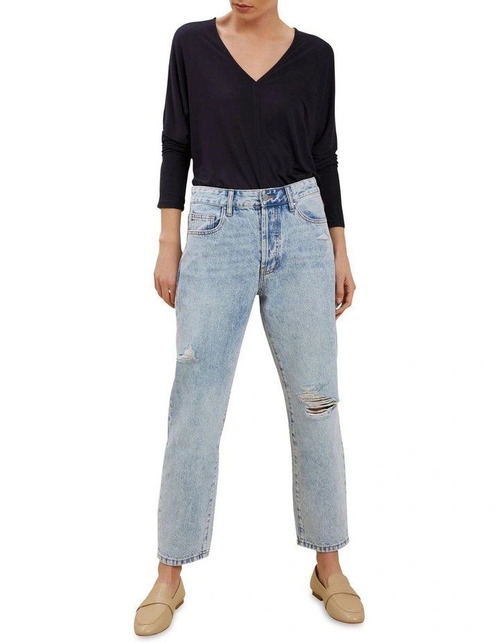 A classic style, these boyfriend jeans are a wardrobe essential. The structured denim skims the hips and falls into a wide silhouette, cutting off before the ankle for a flattering fit. These jeans are designed with distressed details and have pockets at the front and back for added practicality. The jeans have a matching pair in the Girls range, the Mini Me Boyfriend Jean, as part of our Mini Me capsule collection.
