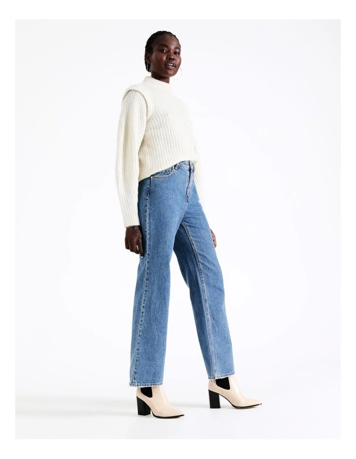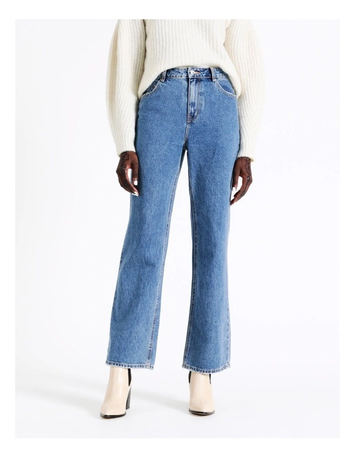 Straight denim jeans with a high rise, five pockets, and a button and zipper closure. Style these great denim jeans with an oversized t-shirt, some chunky sneakers, and your best accessories for a cool and edgy everyday cool.